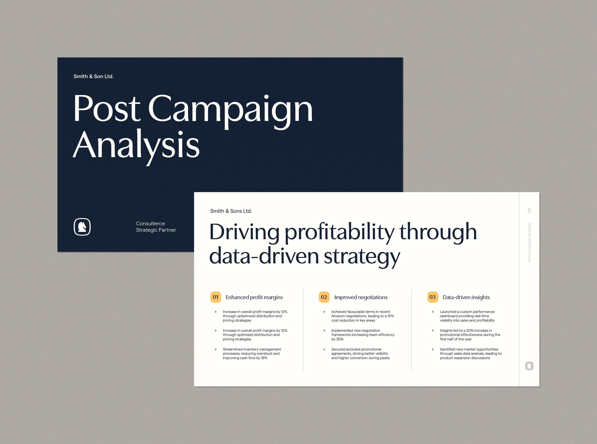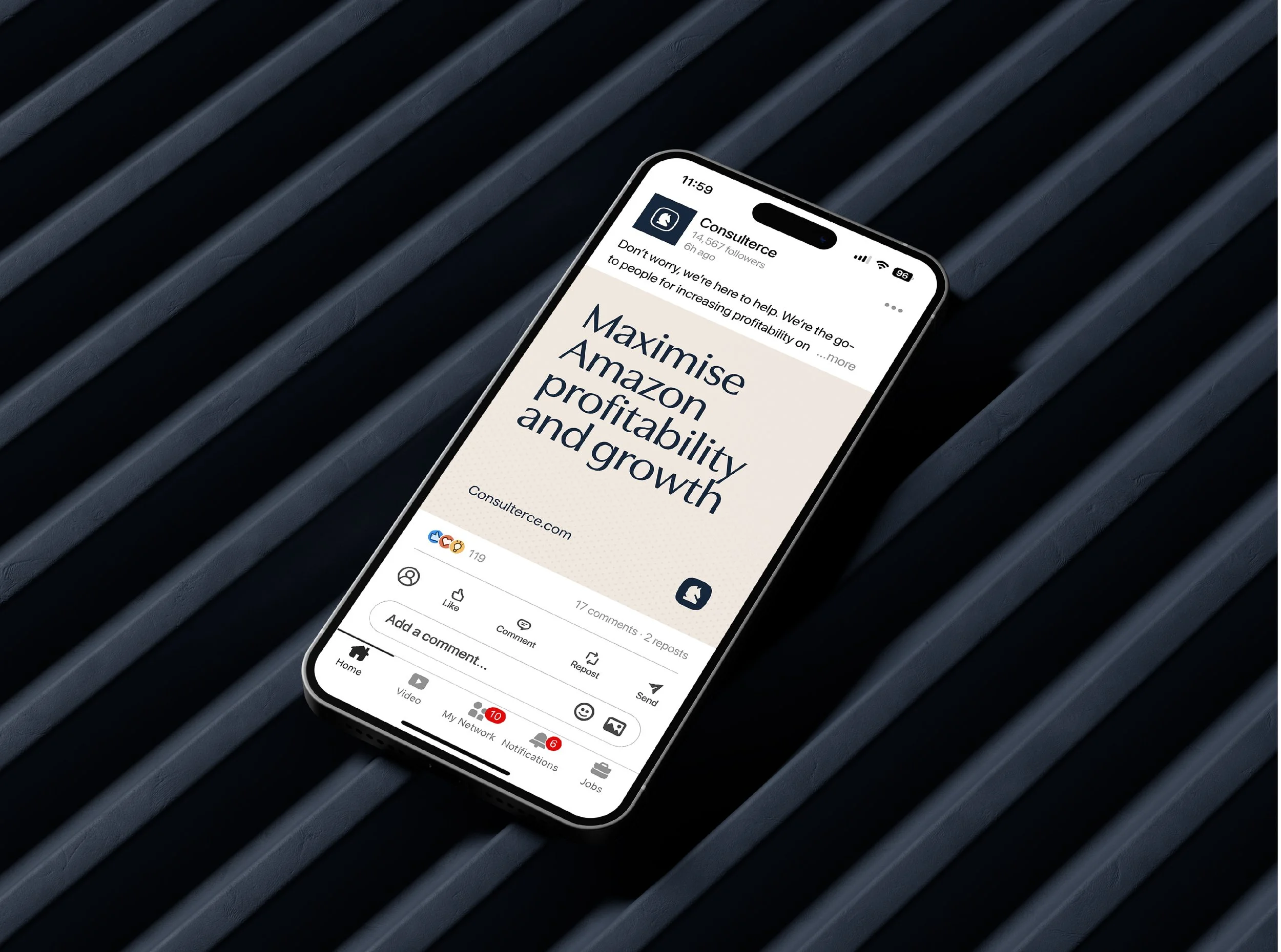 Consulterce is a specialised consultancy dedicated to helping FMCG and B2C brands optimise their profitability on Amazon. With deep expertise in navigating Amazon’s unique marketplace dynamics, Consulterce provides strategic guidance on trade negotiations, pricing, and distribution, empowering brands to achieve sustainable growth. Martin asked me to refresh his brand’s identity ensuring the new design provided more flexibility for creating brand assets and as whole feel more cohesive. In a sense, change everything without making it feel different. Easy peasy. *gulp*