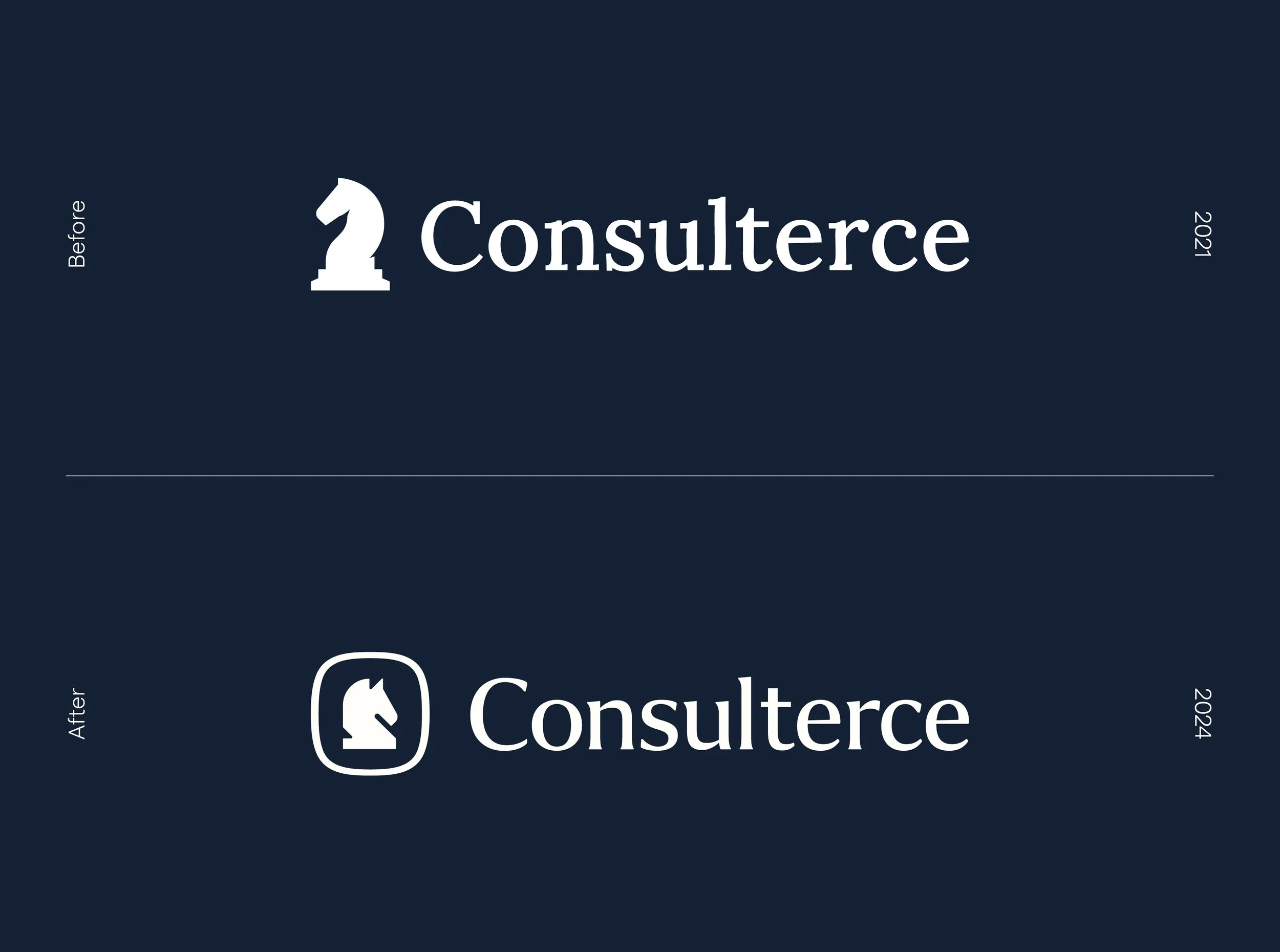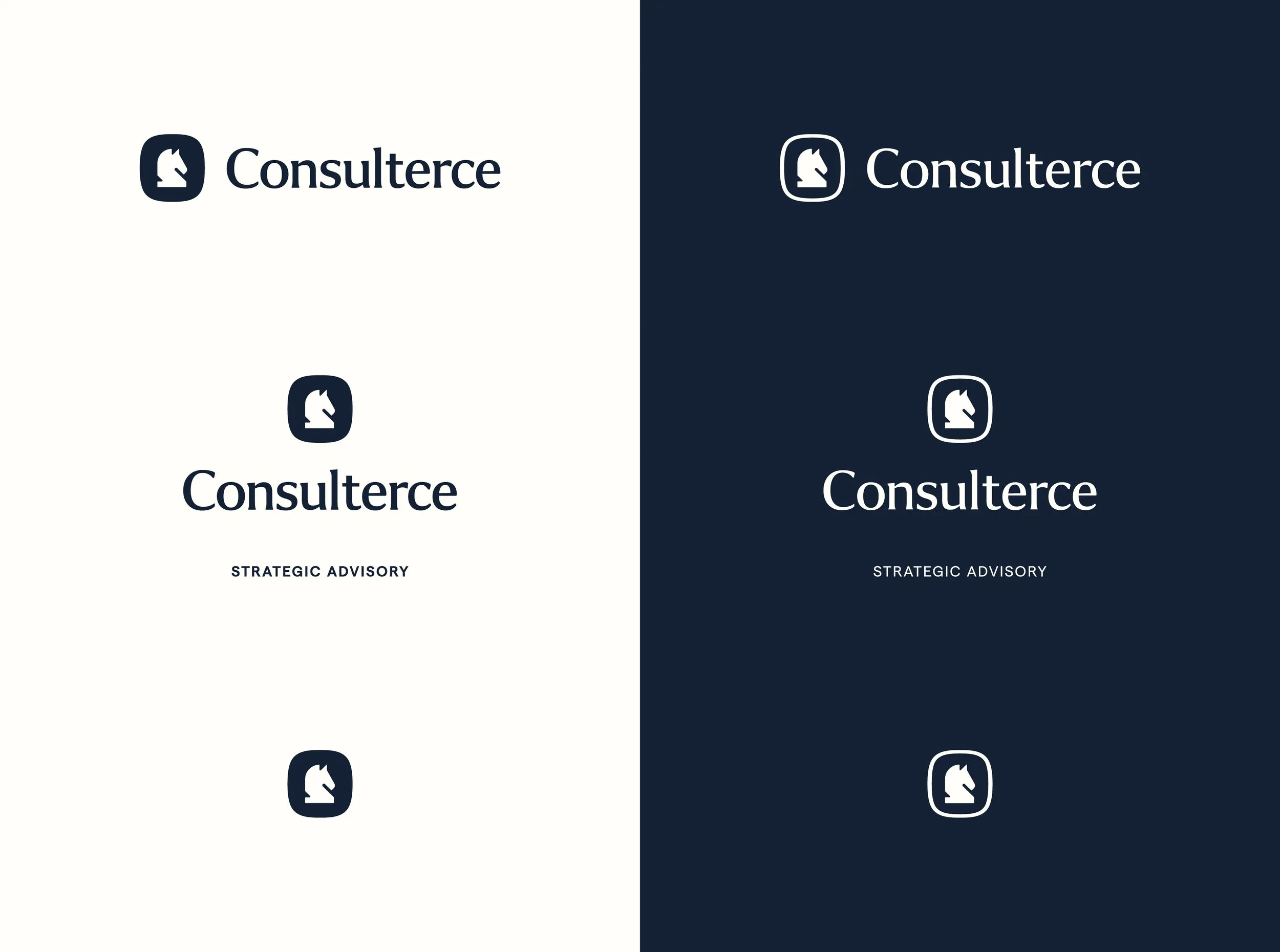 Despite figuring out Consulterce’s brand identity without professional support, Martin had cleverly tapped into symbolism within his logo design. Capturing strategic thinking perfectly, the knight chess piece had to stay in his brand refresh and it was up to me to make it more functional, memorable and timeless. I highlighted a few key areas for improvement in Consulterce’s original logo: