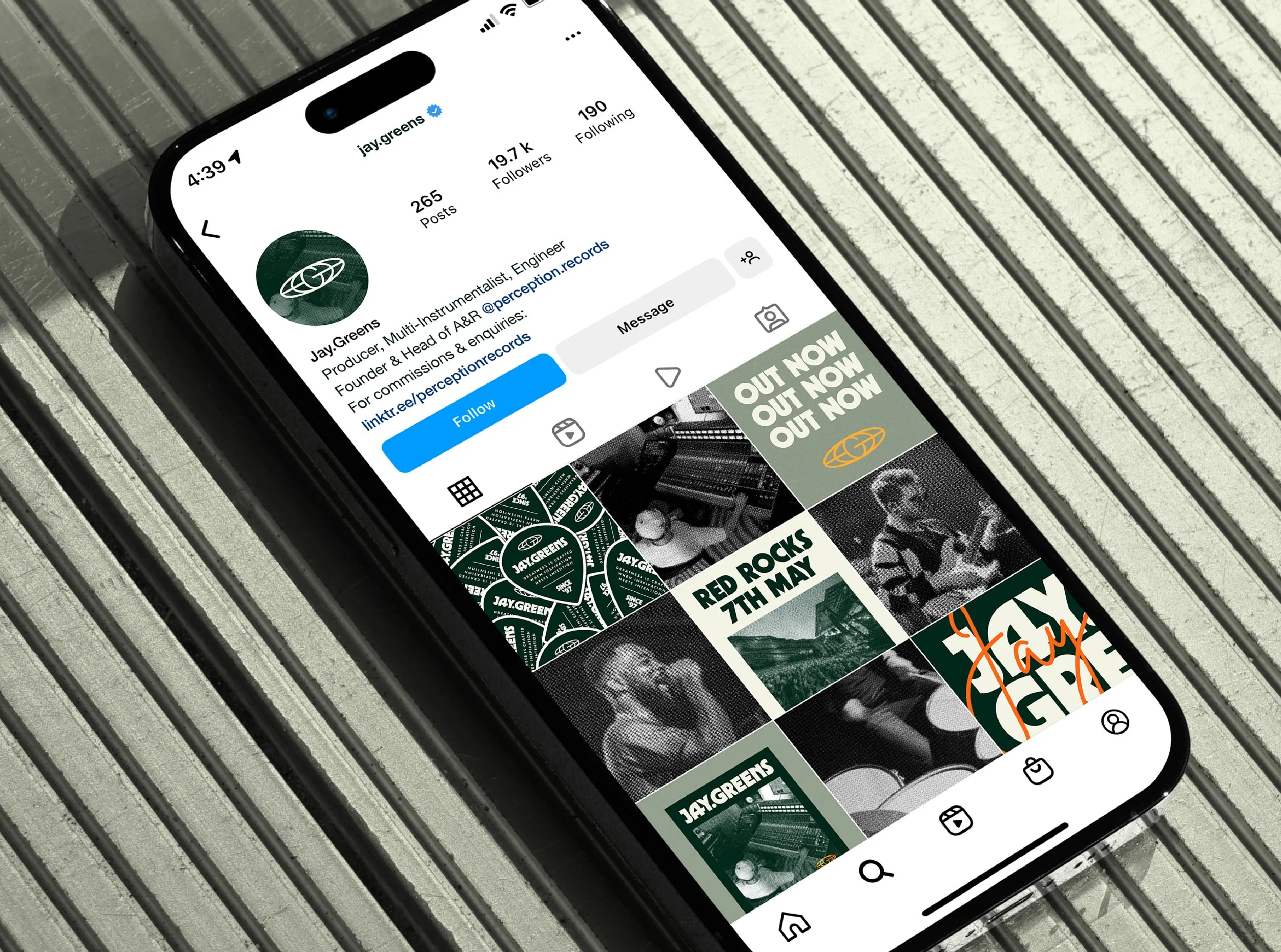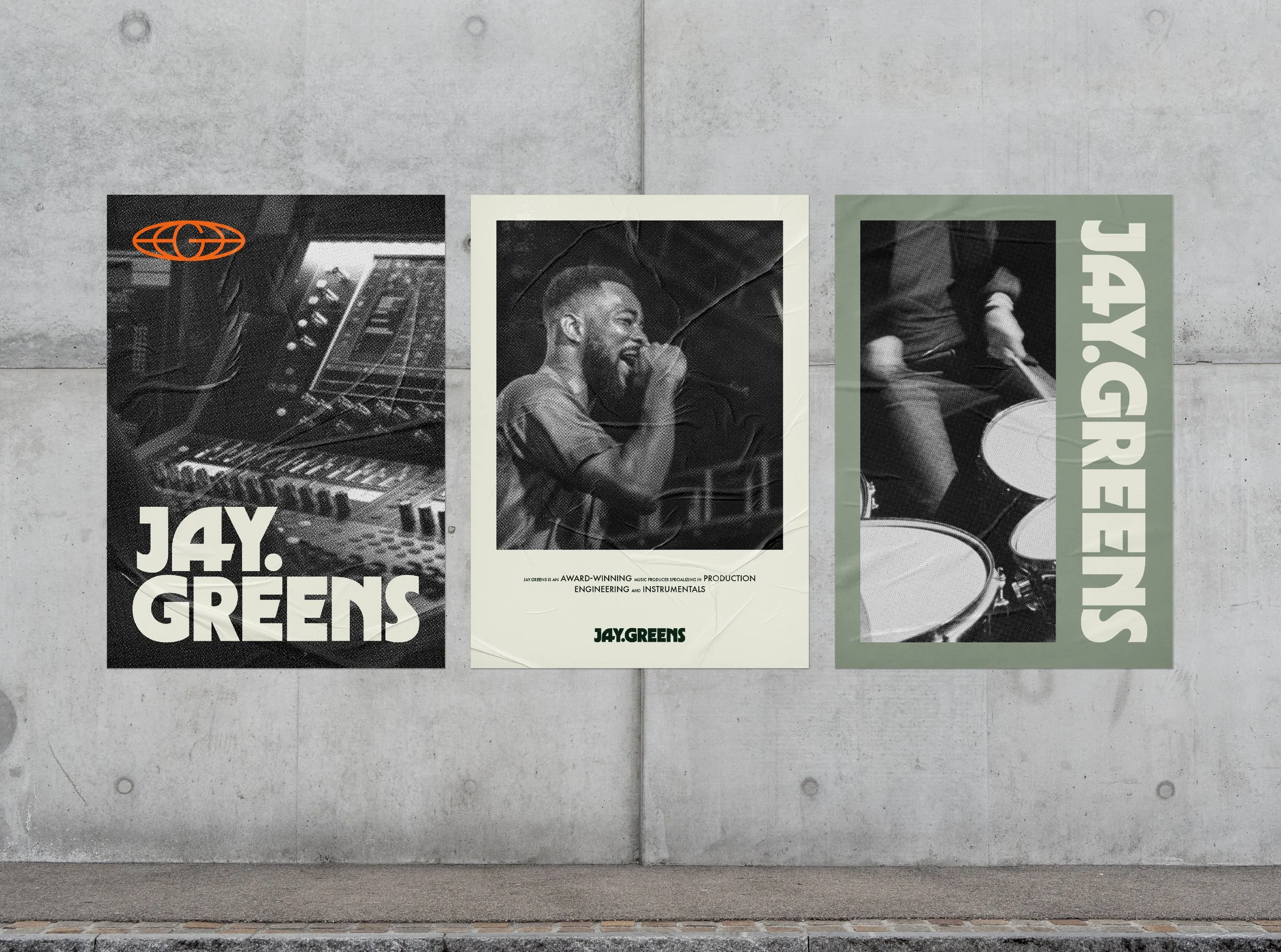 The all-round creative musician Jay.Greens needed to create an identity that would resonate with his deep commitment to creativity, authenticity, and collaboration. With over a decade of experience, Jay is known for his holistic approach to production, guiding artists across various genres to realise their unique sound. My goal was to create a visual identity that encapsulated the spirit of him as a person, his inspirations and approach to music creation and production.