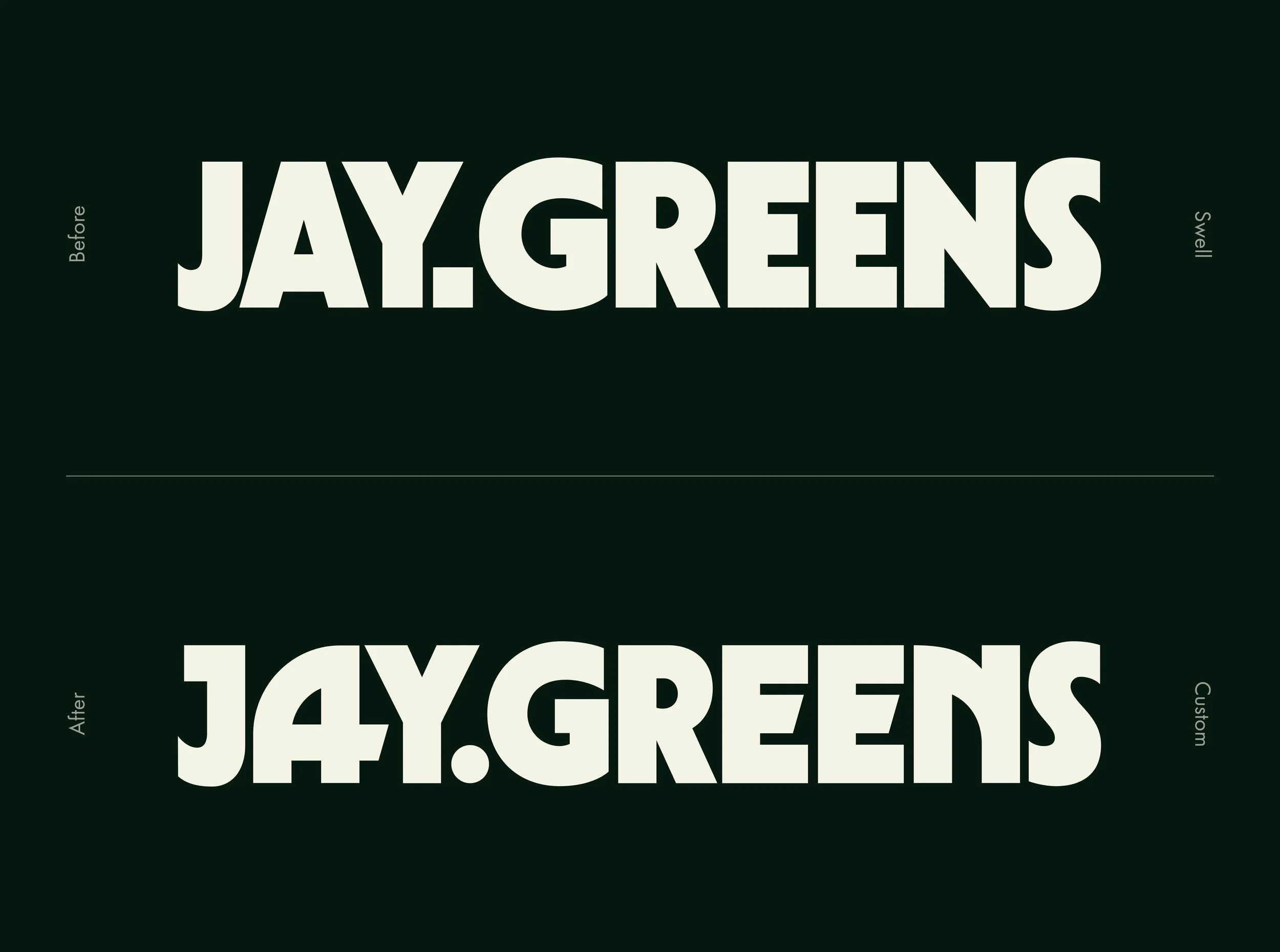 Having found a fantastic base for this typeface in Swell, I customised and redrew elements to provide better balance and cohesion across the wordmark. Particular stand outs are the new A and N letterforms which feel like mirror images of each other. This visualised how Jay collaborates with other artists, guiding them to reflect their world view in their art. Other subtle customisations, such as the unique crossbars in the A and E’s, were made drawing on other inspiration from the time to create a beautiful wordmark that feels at home yesterday, today and tomorrow.