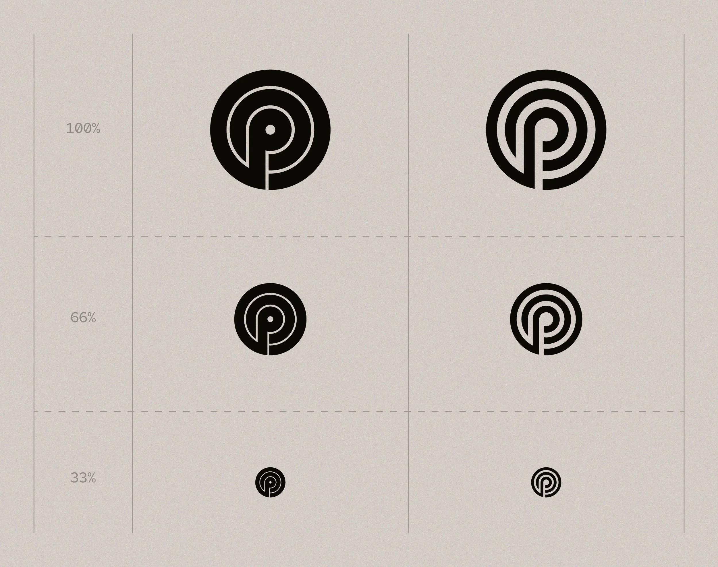 The brand mark itself was simple, clean, and conceptually strong, but struggled with scalability and consistency. By adjusting the weight, increasing negative space, and introducing a subtle cut into the ‘P’, the mark became more legible at smaller sizes and spoke the same design language throughout. These refinements also made the logo significantly easier to reproduce across physical applications and varied printing methods.