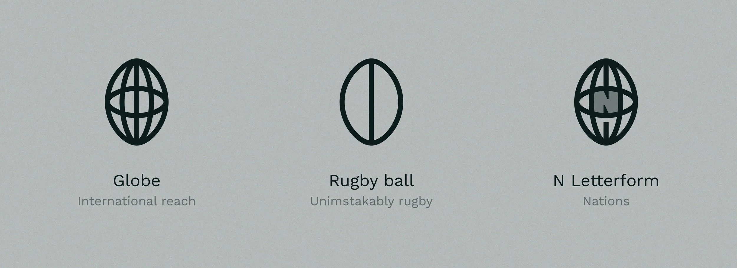 With that in mind, I spent a lot of time playing with N letterforms, timeless rugby ball silhouettes and globes to reference their international reach. Sometimes when you’re designing logomarks, it feels like your bashing your head against a wall and you begin to doubt your entire skillset praying for a Eureka! moment. The stakes were extra high for this project being the biggest brand I had ever worked with up until this point so the head bashing and self-doubt amplified big time…but so did the Eureka! moment.