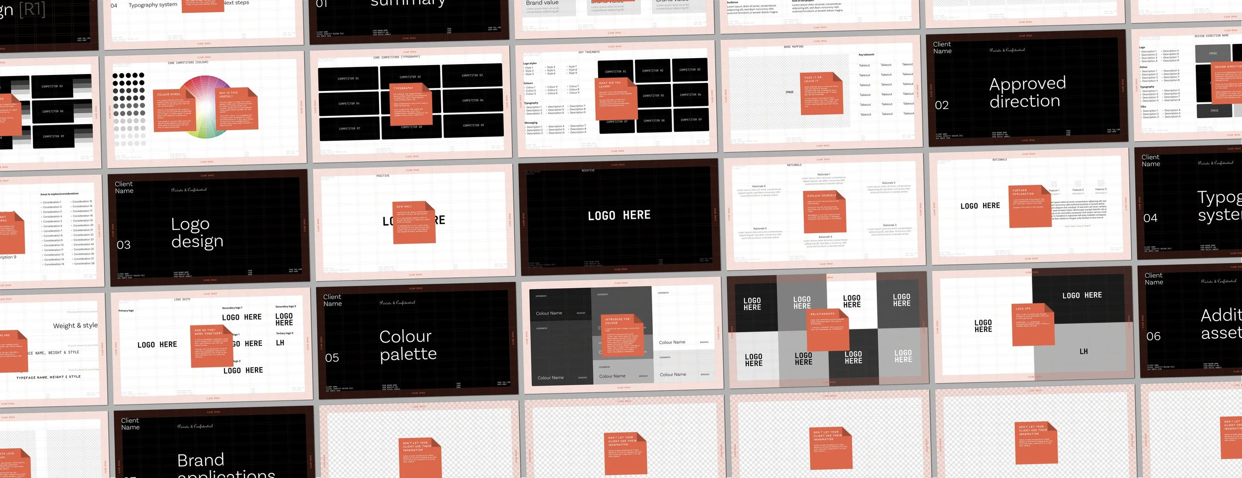 This template helps you present your identity work with structure and clarity, showing how each decision ties back to the strategy. It’s about leading the conversation, not just showing the visuals.